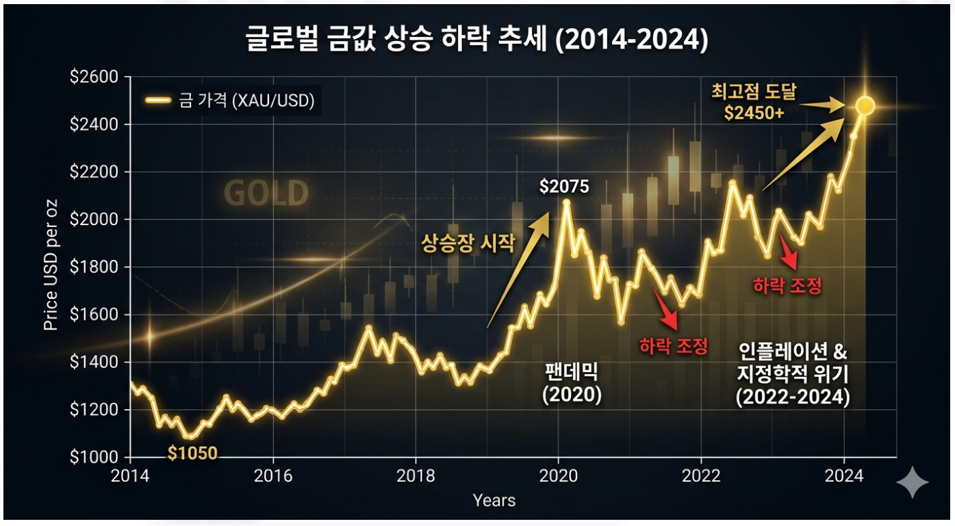 한국 투자자들은 단순히 '국제 금값'만 봐서는 안 됩니다. 원/달러 환율이라는 변수가 수익률의 절반을 결정하기 때문입니다.