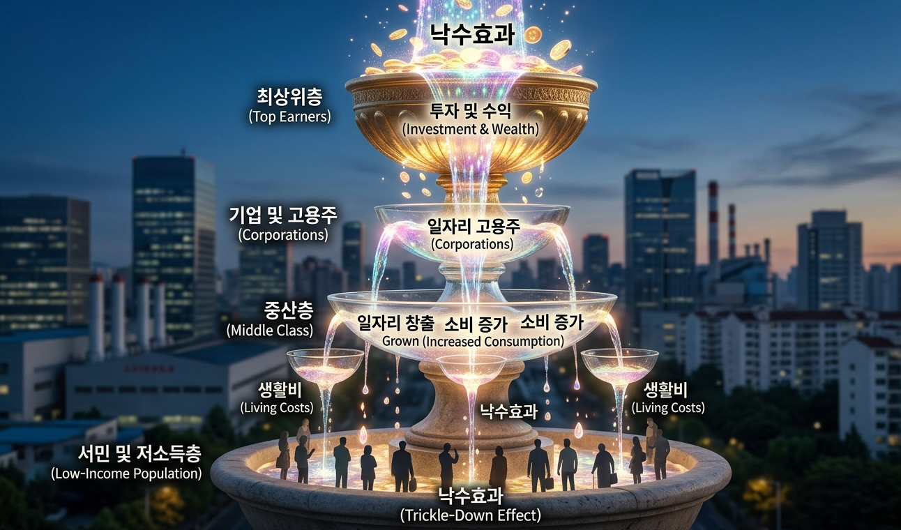 경제학에서 낙수효과(Trickle-down Effect)라는 개념이 있습니다. 낙수효과란 대기업이나 상위 계층의 소득이 늘어나면, 그 이익이 점차 중소기업·가계·소비 시장으로 흘러내려와 경제 전반에 활력을 준다는 이론입니다. 반도체 호황이 진짜 '경제 축제'가 되려면 이 흐름이 작동해야 합니다.