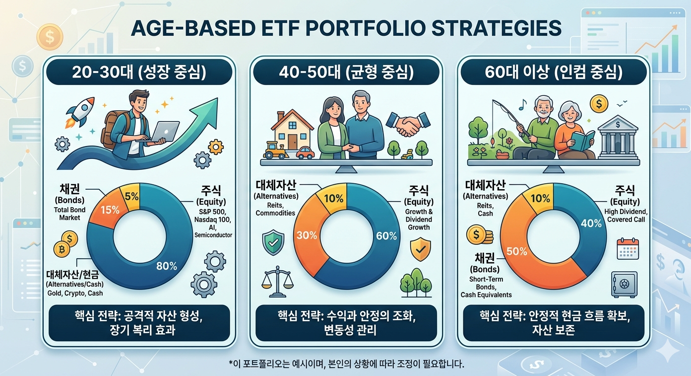 저처럼 이제라도 제대로 된 투자 포트폴리오를 짜서 든든한 노후 자산을 마련하고자 고민하시는 분들을 위해, 오늘은 제가 공부하며 정리한 연령대별 ETF 포트폴리오 전략을 깊이 있게 공유해 보려 합니다.